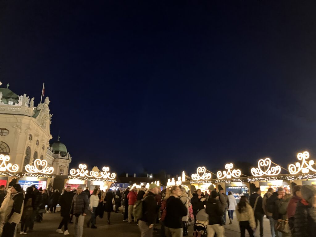 時間的にウィーンで1泊した方が良さそうだったので、ついでにウィーンのクリスマスマーケットにも行ってみようと調べたところ、マーケットとは違いますが、ベルベデーレ宮殿でクリスマス村という名で出店が出ているようだったので、そちらにお邪魔することに。